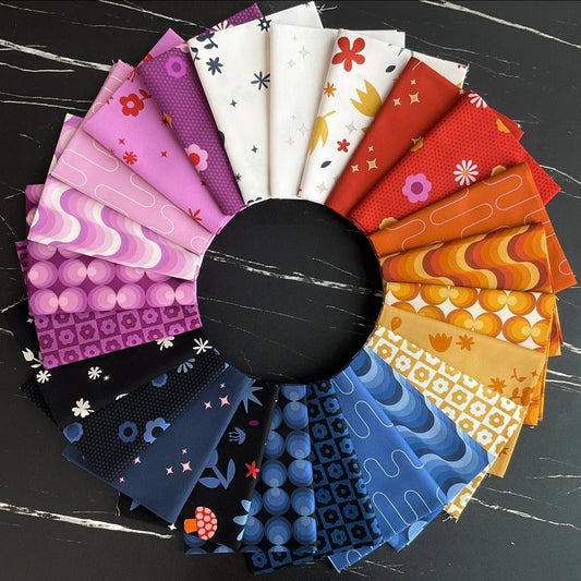 Elizabeth Elliott (Libs) is a quilt artist based in Toronto, Canada who combines technology with traditional craft to design her work. She began quilting in 2008 and quickly became hooked on the craft. Since then, Libs has turned her talents to designing modern quilt patterns, making work for both art shows as well as corporate projects, and has taught as a quilt instructor around the globe. Libs shares her passion for quilting through her fabric collections which are often inspired by personal experiences and nostalgia and fluctuate between bright colours and modern neutrals.
