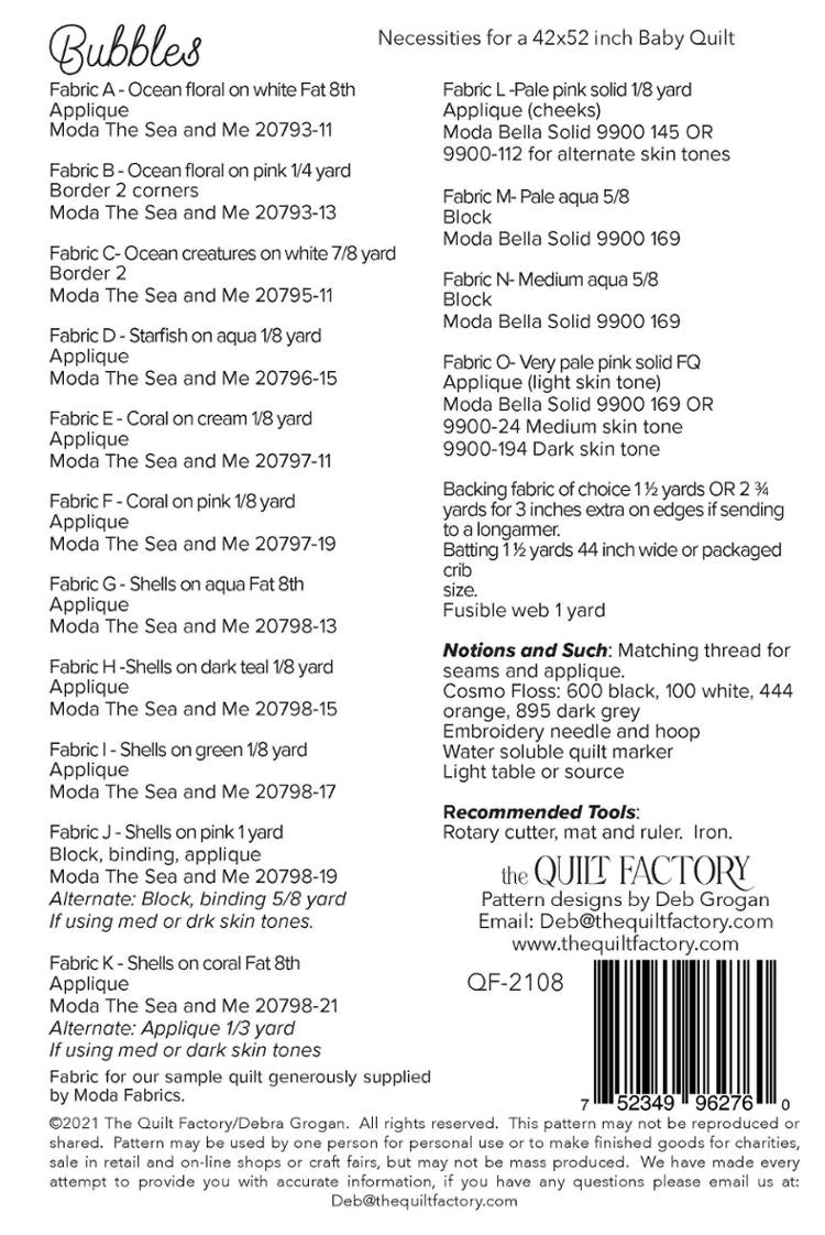 What little one wouldn't love this sweet Mermaid quilt. Create this stunning quilt with confidence using the detailed instructions and diagrams. Options for making Mermaid with alternate skin tones.