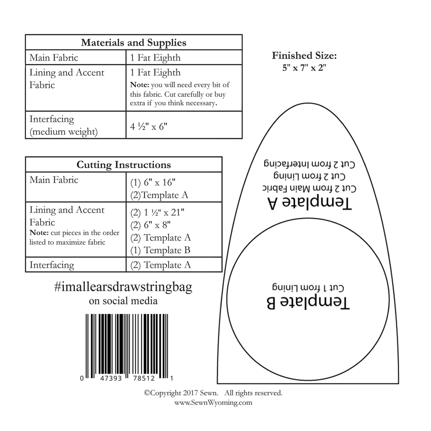 Ce simple sac à cordon est parfait pour contenir de petits cadeaux et friandises. Remplissez-les et rangez-les dans des paniers de Pâques, ou cachez-les dans le cadre de votre chasse aux œufs. Une fois les vacances terminées, utilisez-les pour ranger de petits objets comme des crayons, des fournitures d'art, des friandises, etc. Taille finie : 5" x 7" x 2" Niveau de compétence : Confiant Techniques pour débutants : Couture de base, couture supérieure.