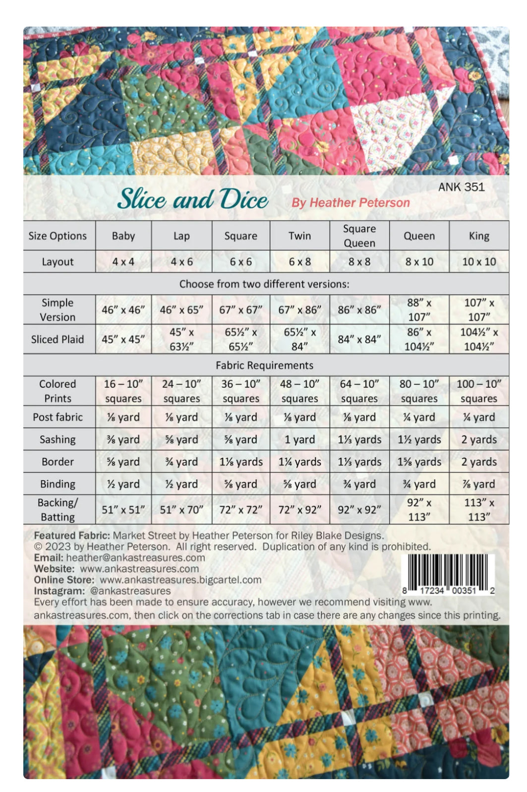 A 10' square friendly pattern that includes to different layout options that begin with a half-square triangle block that can then be slided and sashed. Meant to feature the diagonal stripe from the Market Street fabric line. Multiple sizes included.