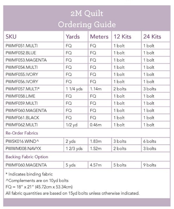 Kit Includes Pattern and Fabric for Quilt Top & Binding.
