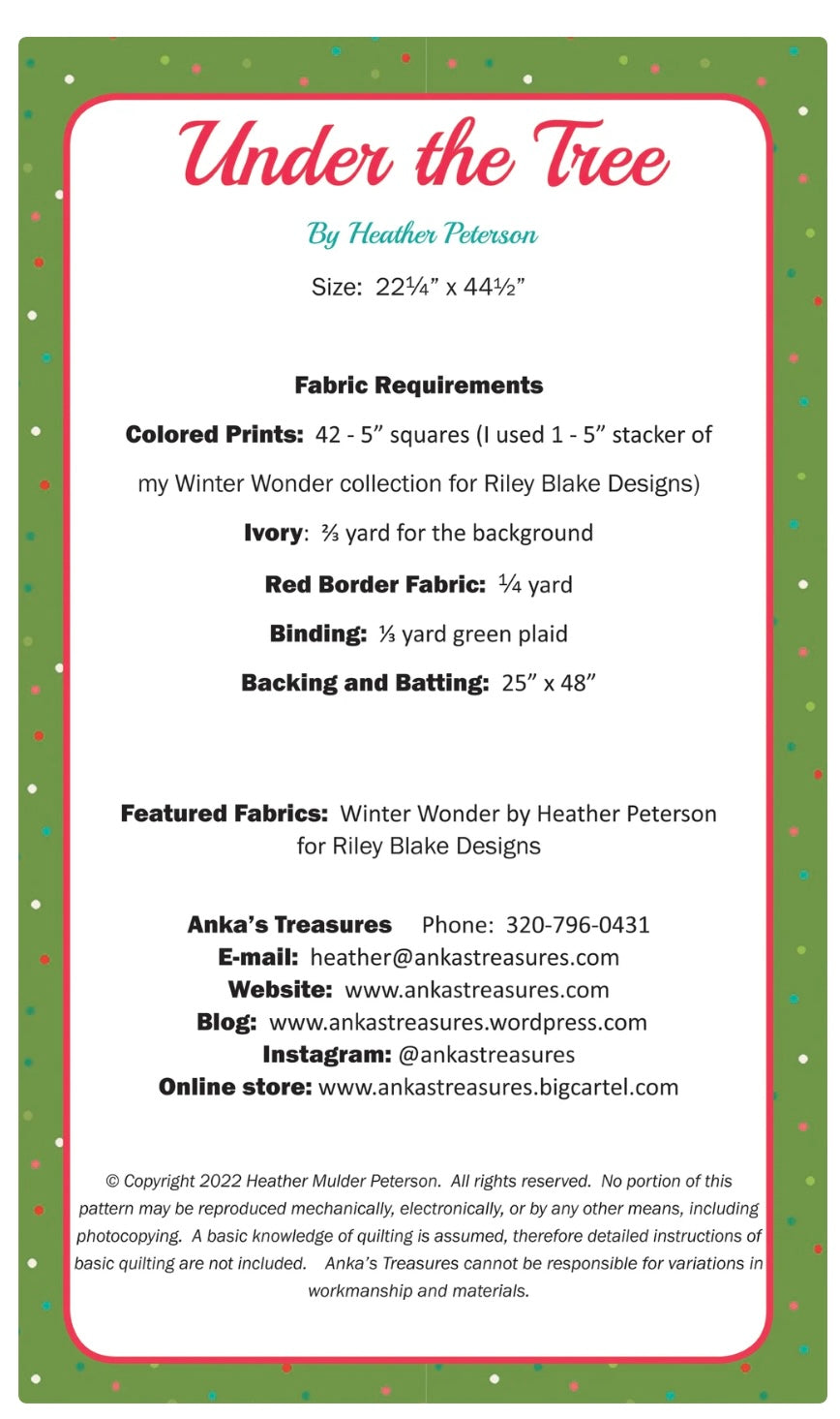 Under The Tree Quilt Pattern by Anaka's Treasures - Special Order