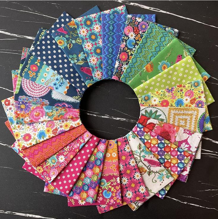 Step back in time with Vintage Soul, a playful collection by Cathe Holden that celebrates the crafty spirit of the 60s and 70s. This fat quarter bundle features whimsical embroidered florals, charming birds, and delightful repeating patterns bursting with vibrant, feel-good hues. Inspired by vintage crocheted potholders and beloved mid-century patchwork throws, these fabrics bring nostalgic joy to any project. Whether you're piecing together a quilt, crafting smaller creations, or simply dreaming up your next masterpiece, Vintage Soul transforms every stitch into a celebration of retro charm and colorful happiness.