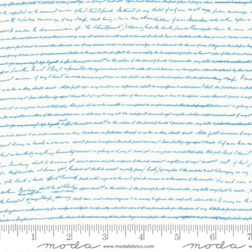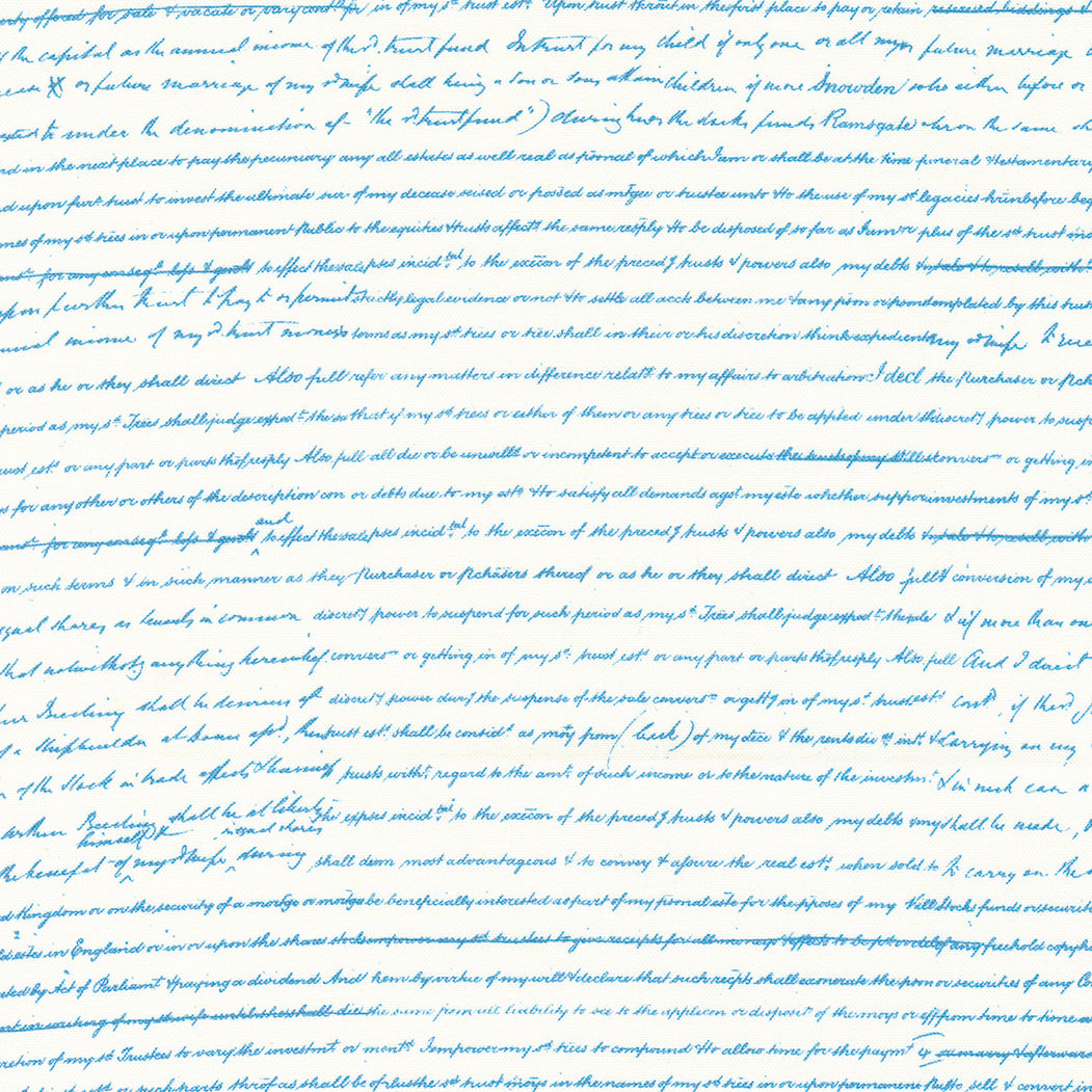 "Bluebell features my floral cyanotypes in every shade of blue with gentle greens layered with a subtle lace texture, a musical score and a flowing vintage calligraphy script. Bluebell and the quilts I make with it will forever remind me of those warm days playing in my garden with the sunshine and flowers." - Janet Clare