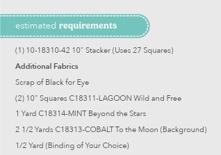| Finished Quilt Size: 48" x 54" Total Yardage: 1 Layer Cake + 4-5/8 Yards |