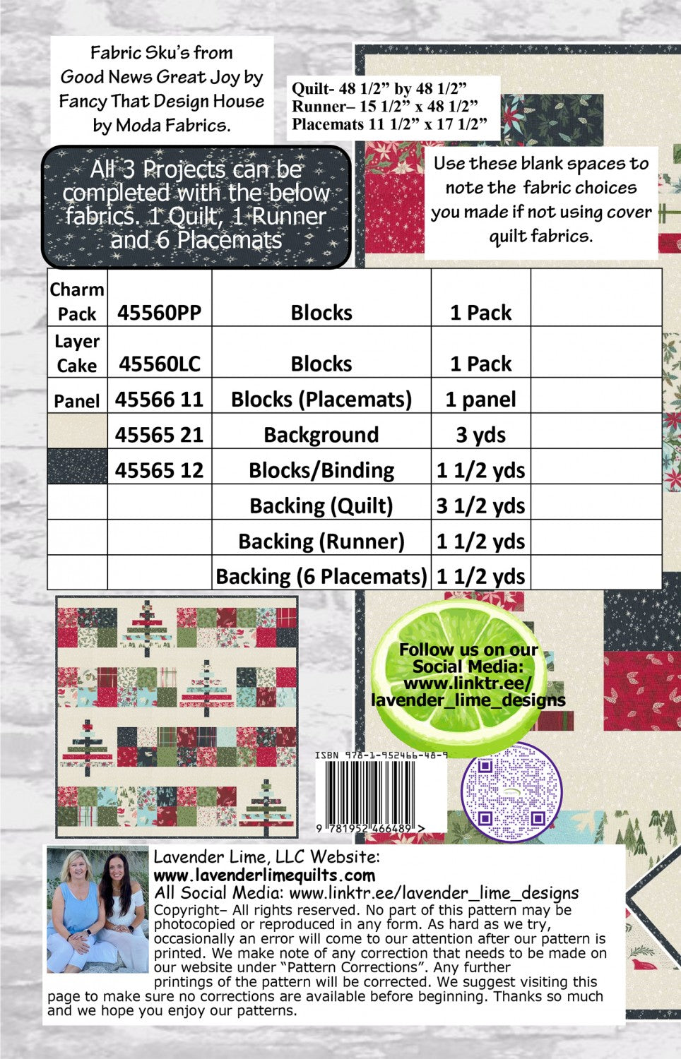 Christmas Trio Table Runner, Placemat & Quilt Pattern by Lavender Lime