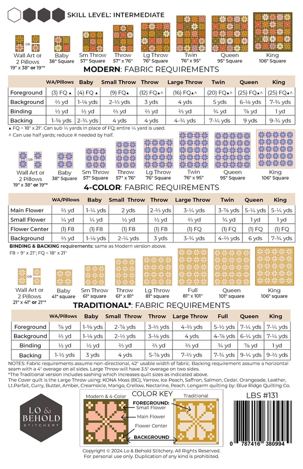 **If pattern requirements change before this kit ships, we will invoice you for any additional fabric needed.