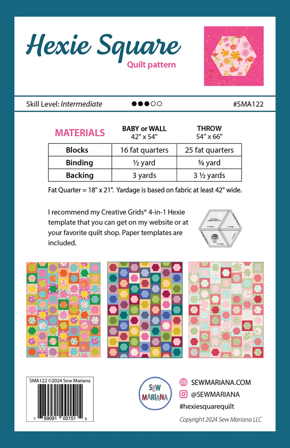 Hit the ground running with this geometric delight. Hexie Square invites quilters to step into the world of hexagons and make a mesmerizing early-intermediate quilt. It’s precut friendly, best used with fat quarters, and it has absolutely no tricky y-seams or paper piecing. Now, the 4-in-1-hexie template is highly recommended for this pattern, but it does include a paper template otherwise!