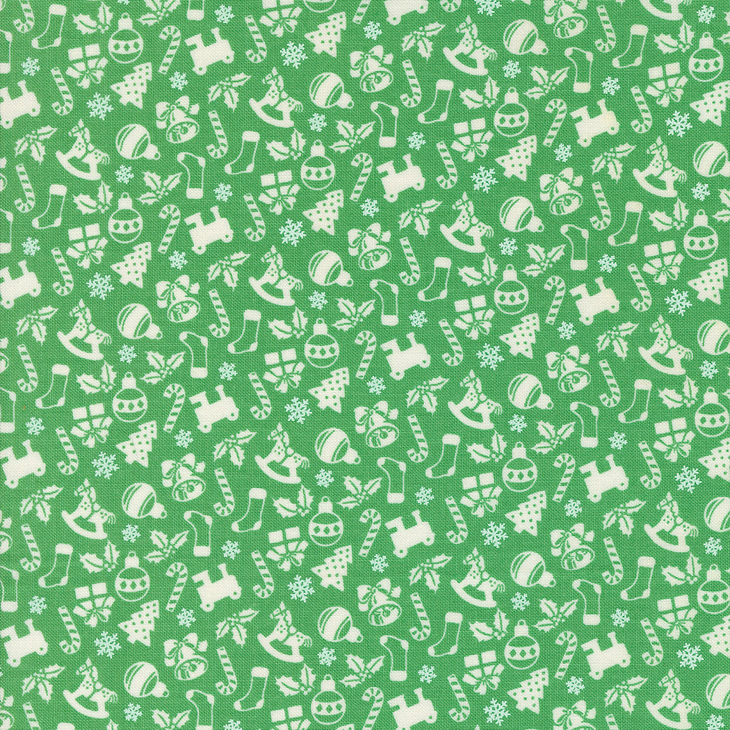 Get ready to stitch up some serious holiday spirit! This Urban Chiks fat quarter bundle stars an adorable mischief-making kitty ready to add personality to your festive creations. You'll love the playful mix of prints—think whimsical poinsettias, quirky toy-box designs, delicate ribbon stripes, and scattered snowflakes all dancing across your fabric. The retro-modern color story of holly green, frosty white, mint, coal, and bubblegum pink is absolutely irresistible. Build quick quilts around that show-stopping oversized kitty panel, or get creative by cutting and appliquéing it onto pieced backgrounds. Either way, you've got everything you need to make quilting magic happen!