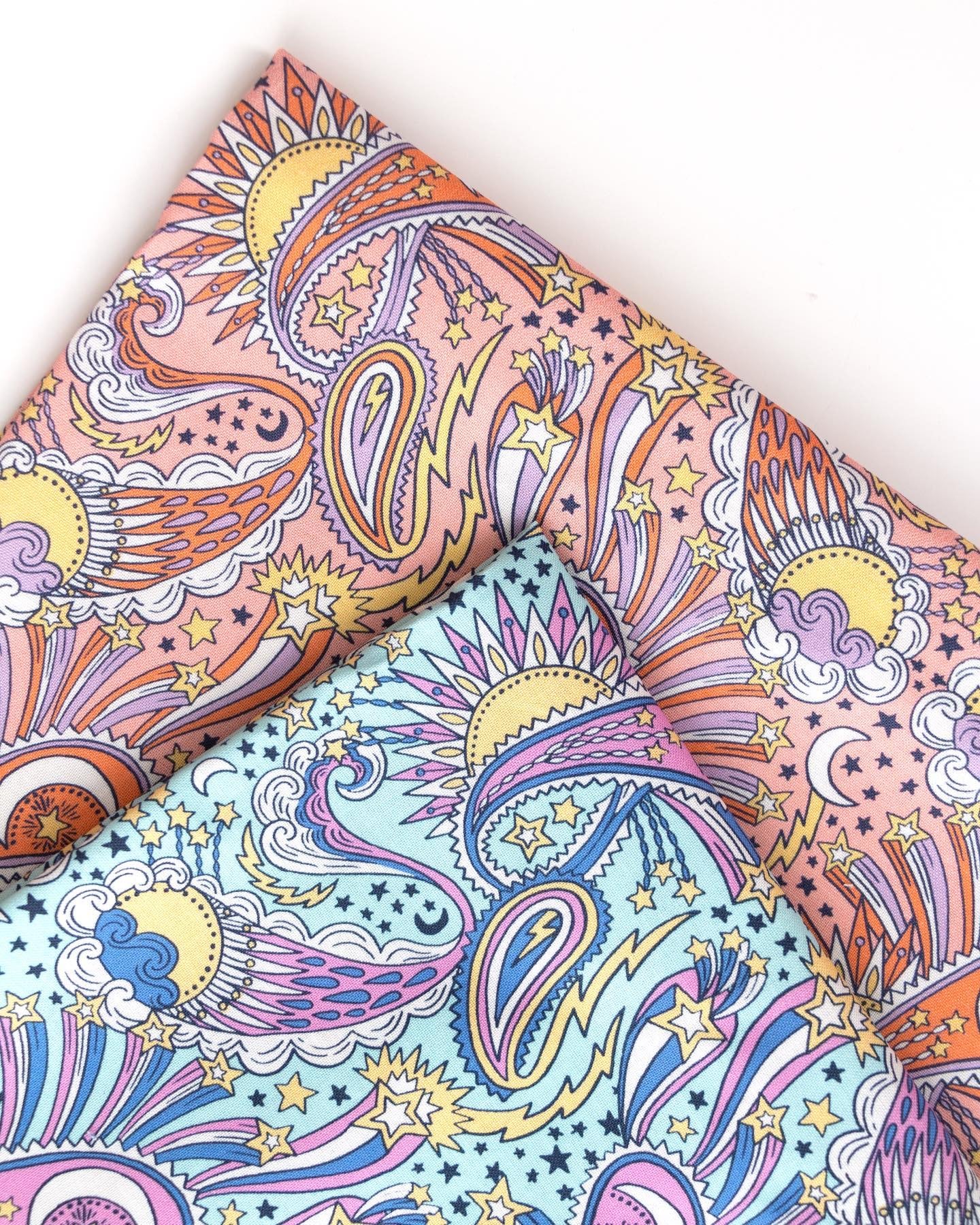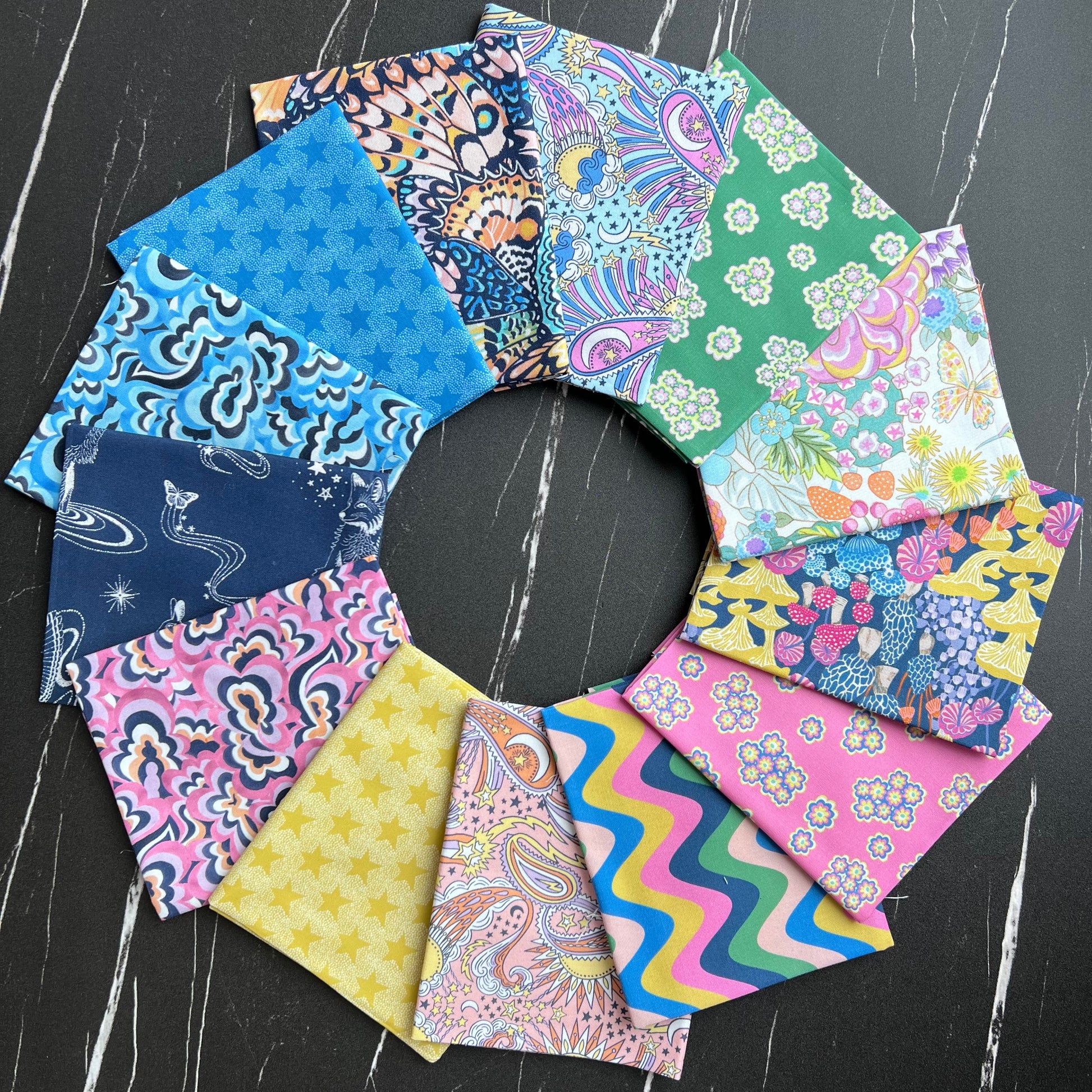 Step into an enchanted woodland where celestial creatures twirl beneath starlit skies and delicate butterflies drift among whimsical mushrooms. This captivating collection by Josephine Kimberling captures the wonder of a moonlit garden awakening—where vibrant blooms dance with playful energy and dawn light filters through misty clouds. Perfect for quilters seeking imaginative, nature-inspired designs with personality and charm. Crafted from premium 100% quilting cotton by Figo Fabrics, these fabric bundles deliver quality and creativity in every stitch.