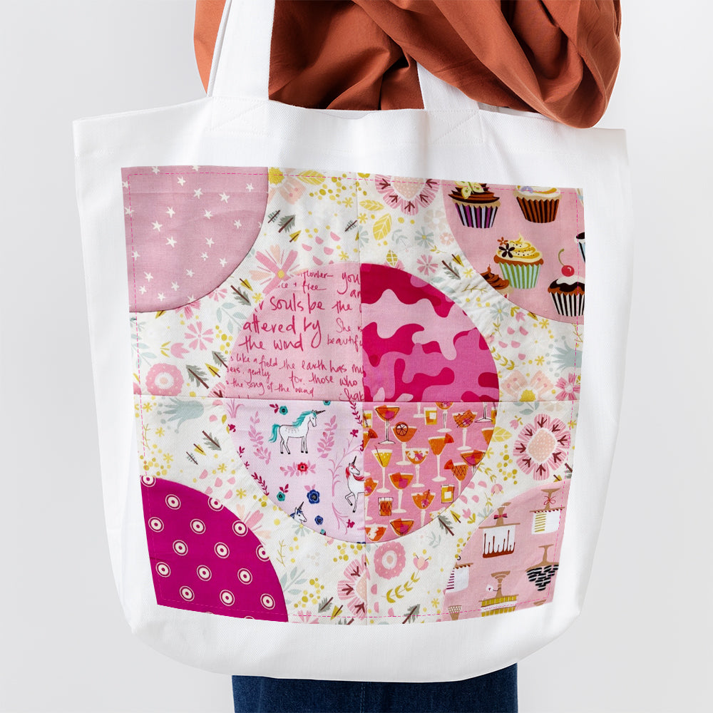 • What can you make with a Dot Matrix quilt block? You can use this pattern to make a fun cushion, appliqué it onto a bag, or make multiple blocks to sew them together into a full quilt.