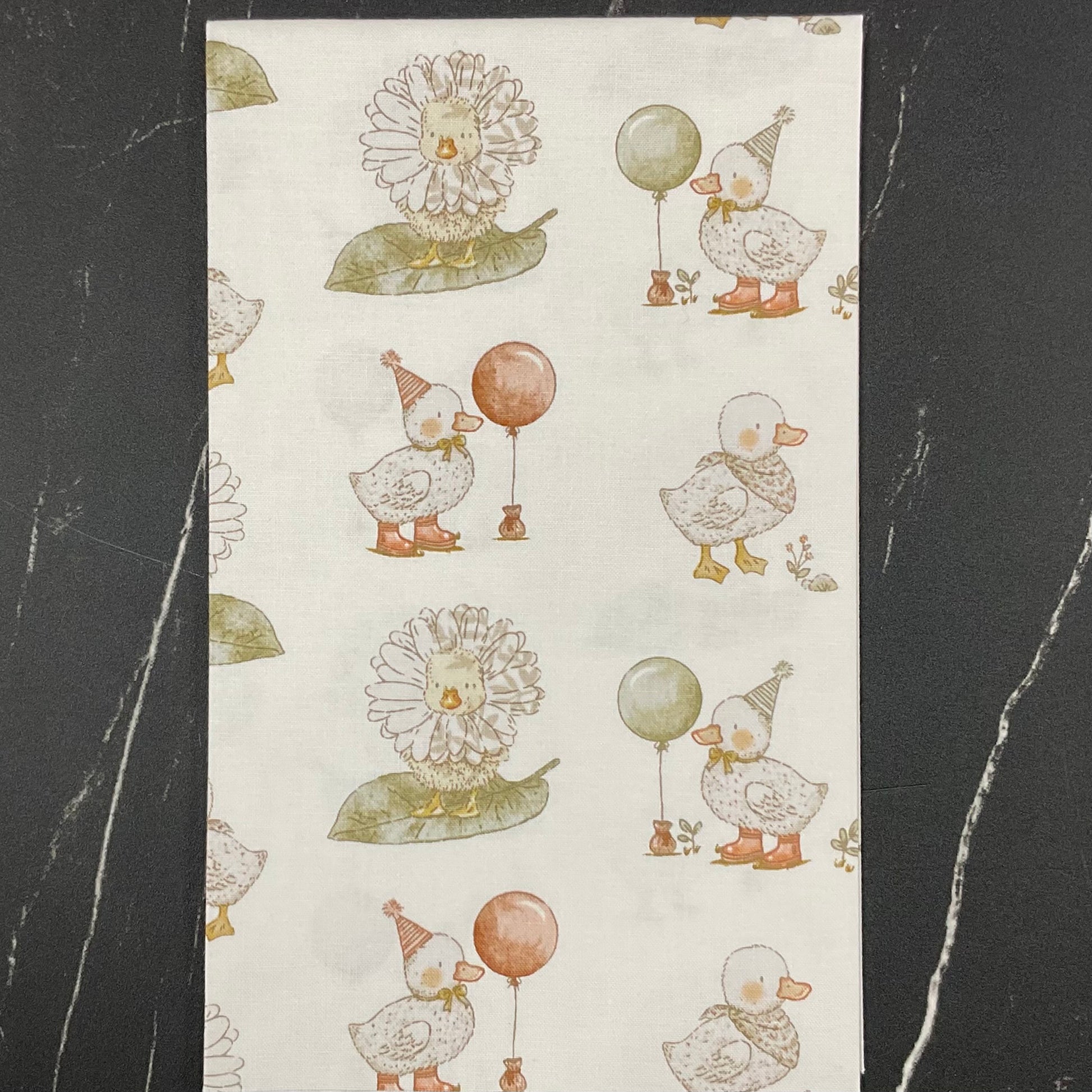 Soft and whimsical, this children’s fabric collection features a soothing palette of warm neutrals. Playful ducklings are at the heart of the designs, paired with delicate florals, hand-drawn ducks, gentle polka dots, and classic stripes. With a nostalgic, storybook-inspired feel, the collection brings warmth, comfort, and quiet charm to children’s projects and spaces.