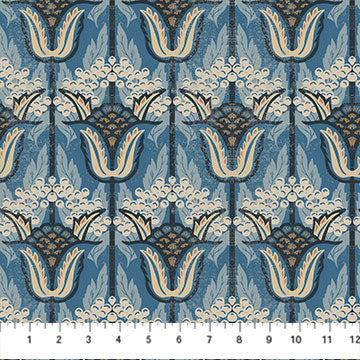 A Japanese-inspired collection with the term 'Wabi Sabi' in mind, valuing beauty that is imperfect. Much like one values an old, rustic, homespun quilt that's been passed down the family line and treasured in its austerity. Wabi takes you on a journey into new and old motifs with a rich color palette of golds, blues, browns and blacks. This collection is sure to be treasured throughout every generation with its roughened, faded patina and timeless prints.
