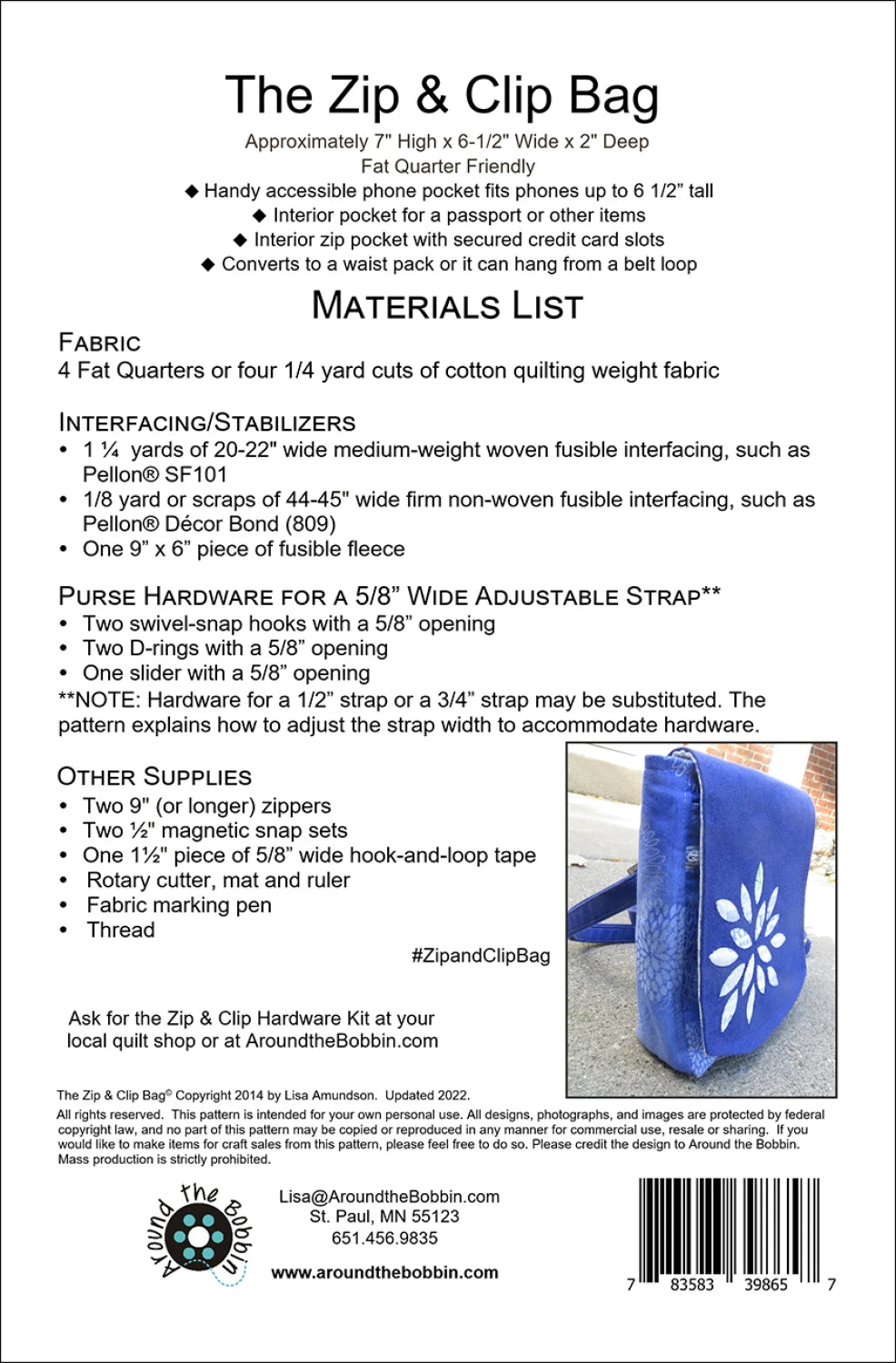 Zip & Clip Bag Pattern by Around the Bobbin - Special Order